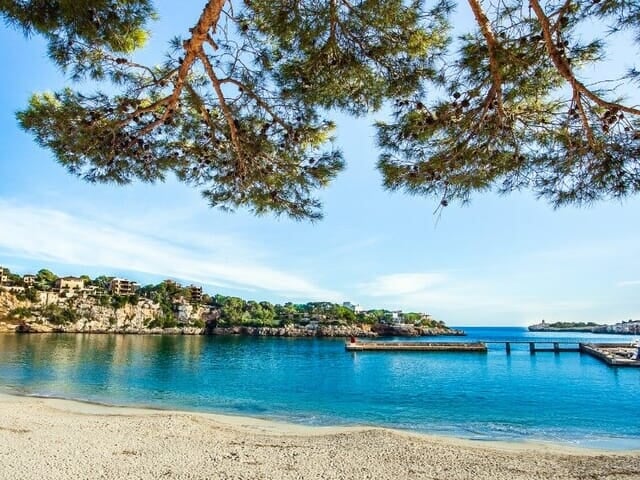 Porto Cristo has a small, golden sand beach, sheltered between a rocky coastline and the town’s charming harbor. The calm, shallow waters make it perfect for families with children.
